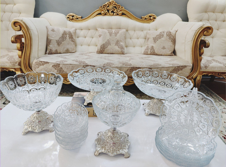 ✅سرویس۱۶ پارچه کریستالی (شامل ۶عدد پیاله ۶عدد پیشدست .چهارعدد ظروف پایه دار ) پذیرایی